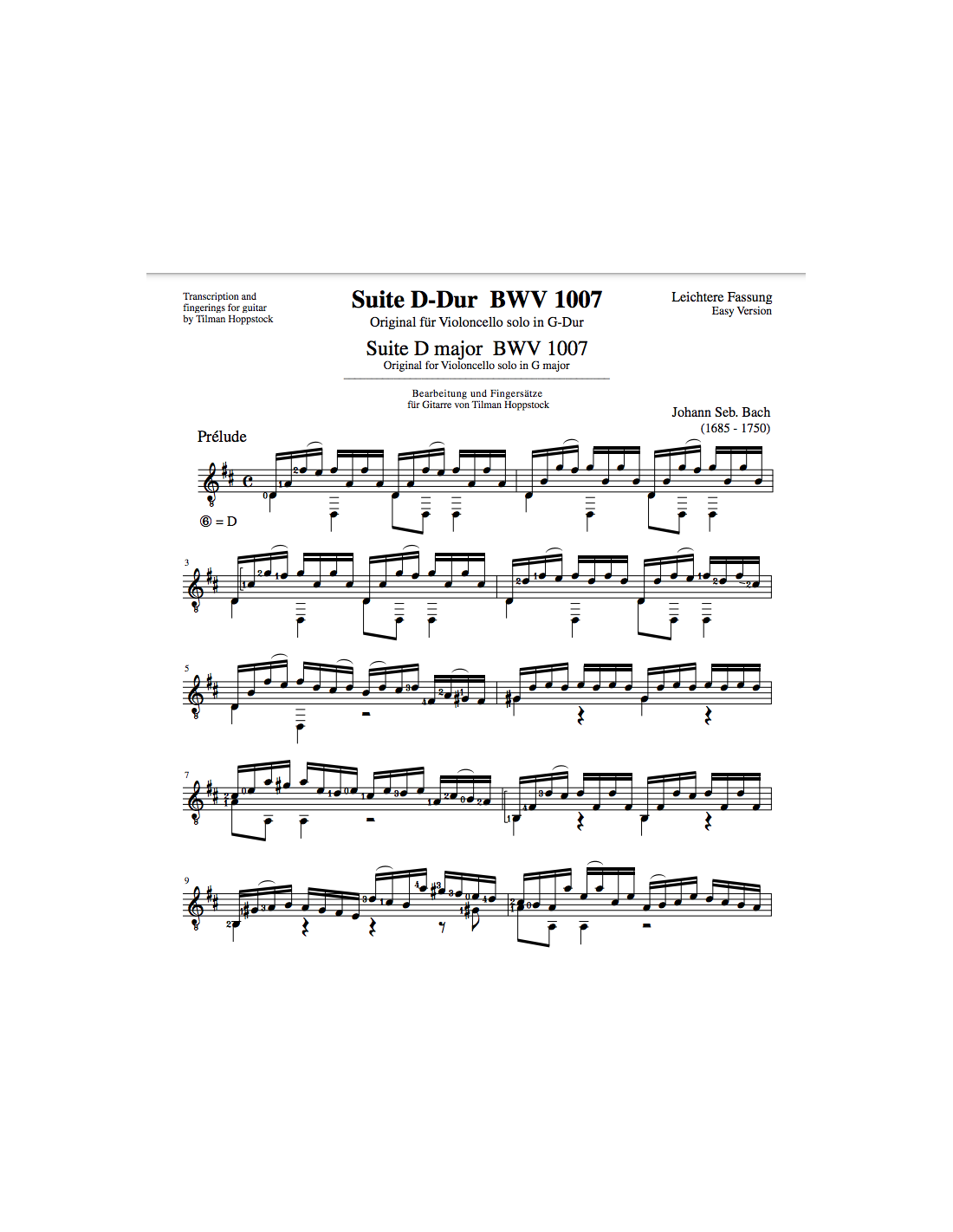 Suite nr. 1 D major BWV 1007